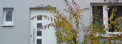 Mit der Planung für diese Doppelhaushälfte wurde begonnen als die andere Doppelhaushälfte verkauft und bereits ohne Architekt mittels Generalunternehmer saniert wurde. Nach kurzer Zeit stellte sich jedoch heraus, dass in der Nachbarhälfte gravierende Mängel der scheinbaren energetischen Sanierung zu Hauf vorhanden waren. Nach Bauteilöffnung aller wichtigen Detailpunkte wurde klar, dass die beauftragte Firma in allen Bereichen ohne jeden Sachverstand gepfuscht hatte. Mittels Sachverständigem und Anwalt klagte der Nachbar sein Recht auf ein mängelfreies Bauwerk ein. Die Konsequenz: Das gesamte Dach inklusive Dämmung und die komplette Außenwanddämmung wurden wieder rückgebaut. Als die Haushälfte unseres Bauherren mittels professioneller Planung, Ausschreibung, Bauleitung und fachgerechter Ausführung energetisch ertüchtigt wurde, begann der Sanierungsprozess mit der gleichen Firma beim Nachbarn noch einmal von vorne! Allerdings nicht ohne erneute Komplikationen und Intervention des Sachverständigen. Nach Fertigstellung unseres Projektes war das Nachbarhaus noch immer eingerüstet. Der Beweggrund unseres Bauherren für eine Sanierung mit erfahrenem Planer war auch „die Schäden des Nachbarn zu vermeiden“ (Zitat). Ganz nebenbei ist ein Gebäude entstanden, das aufgrund der Reduktion der Schallbelastung durch den Flugverkehr des Frankfurter Flughafens und aufgrund des niedrigen Energiebedarfs den Bewohnern neue Behaglichkeit schenkt.