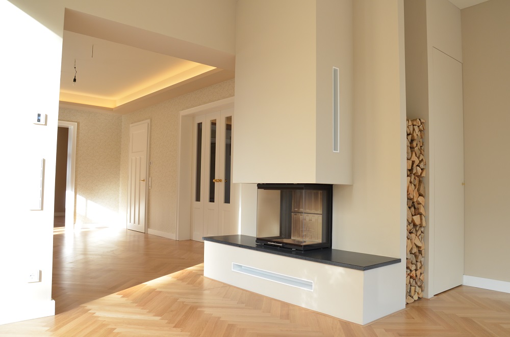 Als Erweiterung wurde dem in neuem Glanz erstrahlten Kleinod ein schlichter Kubus mit großen Verglasungen zum Garten zur Seite gestellt. Durch die Anpassung der Grundrisses konnten auch zeitgemäße Wohnansprüche erfüllt werden. Eine zentrale Lüftungsanlage mit Wärmerückgewinnung und ein Pelletkessel mit Fußbodenheizung sorgen für den zukunftsfähigen Komfort.