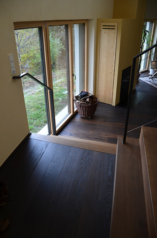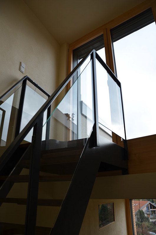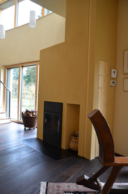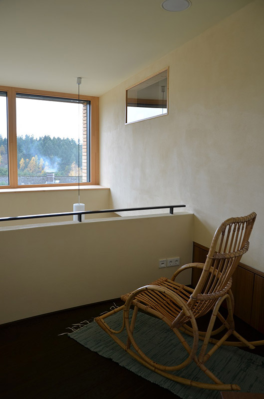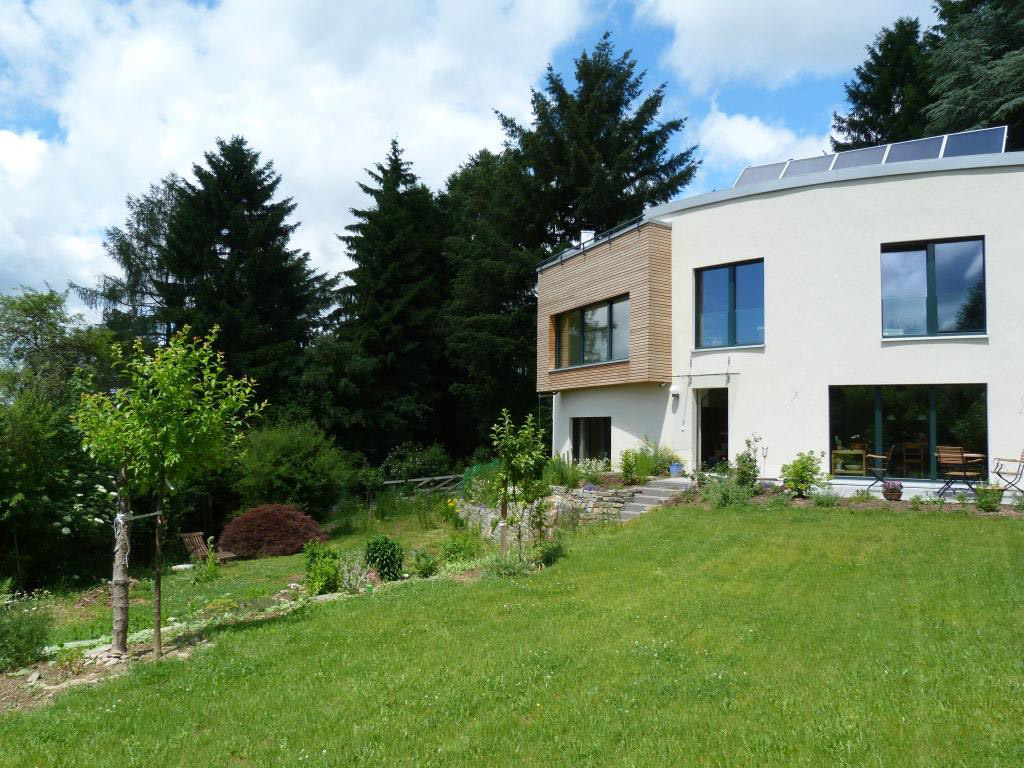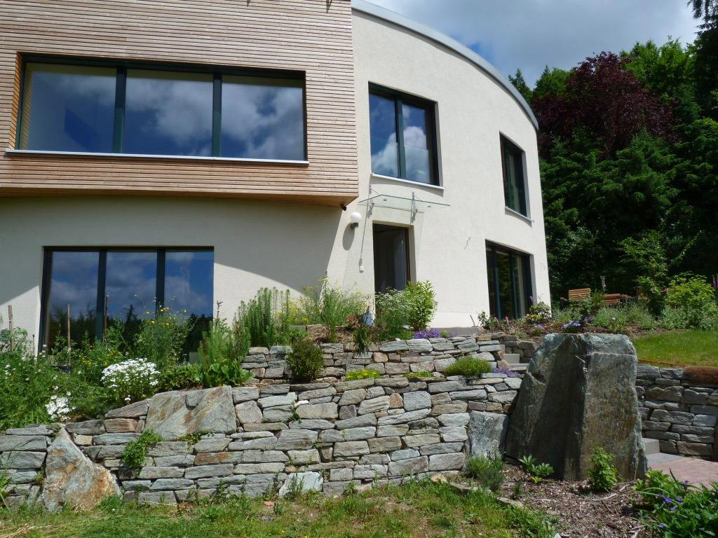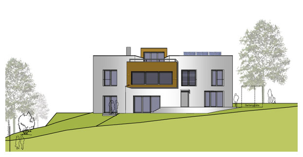 Das Gebäude wird im Passivhausstandard errichtet. Es zeichnet sich durch einen besonders geringen Energiebedarf und Ressourcenschonung aus. Das Erreichen dieses Standards ist maßgeblich von dem kompakten Gebäudekörper und der Maximierung der solaren Energiegewinne des Gebäudes abhängig. Um dieses von den Bauherren gewünschte Ziel zu erreichen, wurde das Gebäude in der vorliegenden kompakten Form entworfen. Es passt sich dem Geländeverlauf und der besonderen Grundstückstopografie (Westhanggrundstück) an. Die Form ist dem Sonnenverlauf angepasst, um die solaren Gewinne zu optimieren. Darüber hinaus ist eine Regenwassernutzung vorgesehen.