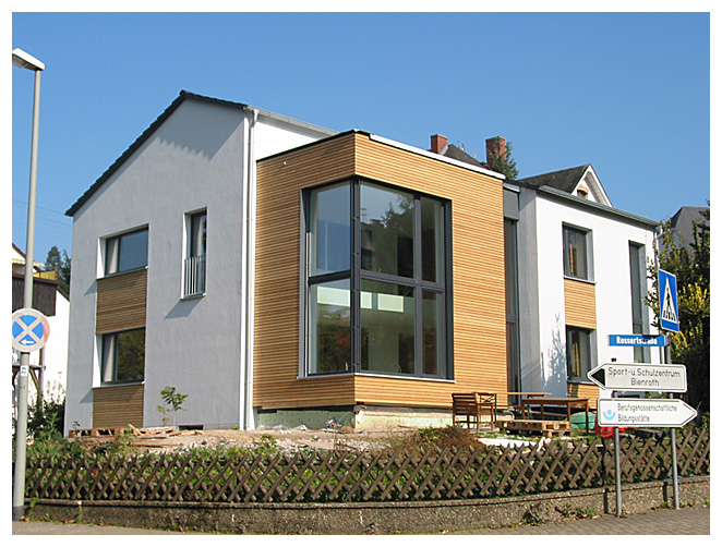 Durch diese Sanierung des 60er-Jahre Wohnhauses zum Passivhaus im Bestand wird das Gebäude nicht nur energiesparend, sondern erhält eine moderne Gebäudehülle, die mit einer Neuorganisation der Grundrisse einhergeht. Großzügige Wohnräume sind der 4-köpfigen Familie wichtig, so wurde aus einem ehemals Zweifamilienhaus ein Einfamilienhaus mit Erweiterung. Der alte Balkon wird in die Gebäudehülle integriert und zukünftig als großzügige Galerie im Wohnraum genutzt.
