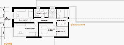 Ein wunderschöner Ausblick auf ein Wäldchen und das weite Tal waren ausschlaggebend für die Orientierung der Wohnbereiche und deren Ausblicksituationen. Als Passivhausstandard konzipiert bietet es wohlige Behaglichkeit. Der kombinierte Holz-/Pelletofen im Wohnbereich kann sowohl manuell als auch automatisch beschickt werden - so verbinden sich Komfort und Atmosphäre.